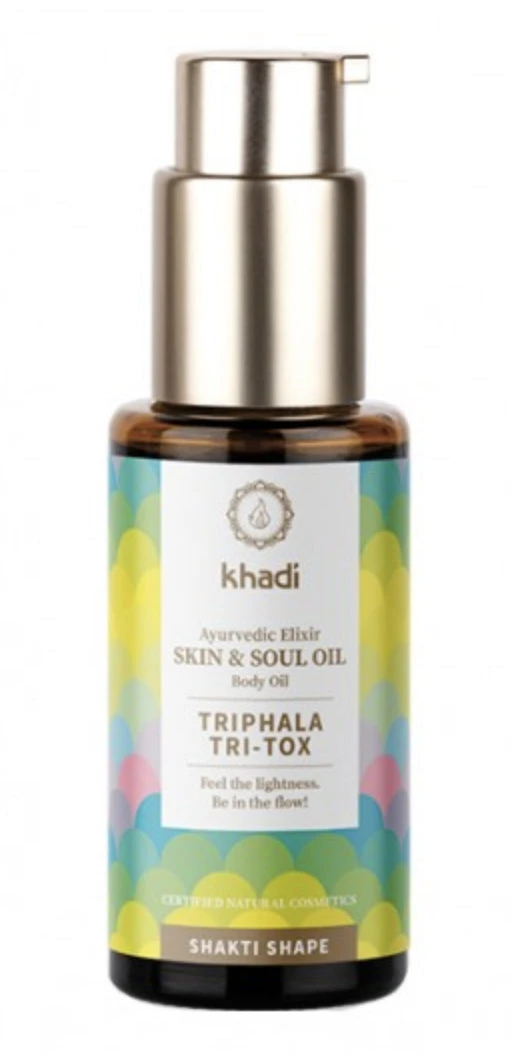 La mágica eficacia liberadora del aceite corporal Khadi Triphala Tri-tox, Elixir que proviene del antiguo conocimiento de la medicina natural más antigua conocida de la humanidad, el Ayurveda, se utiliza tradicionalmente en el tratamiento de limpieza Panchakarma.