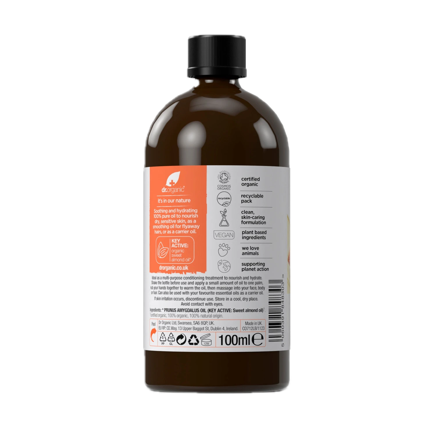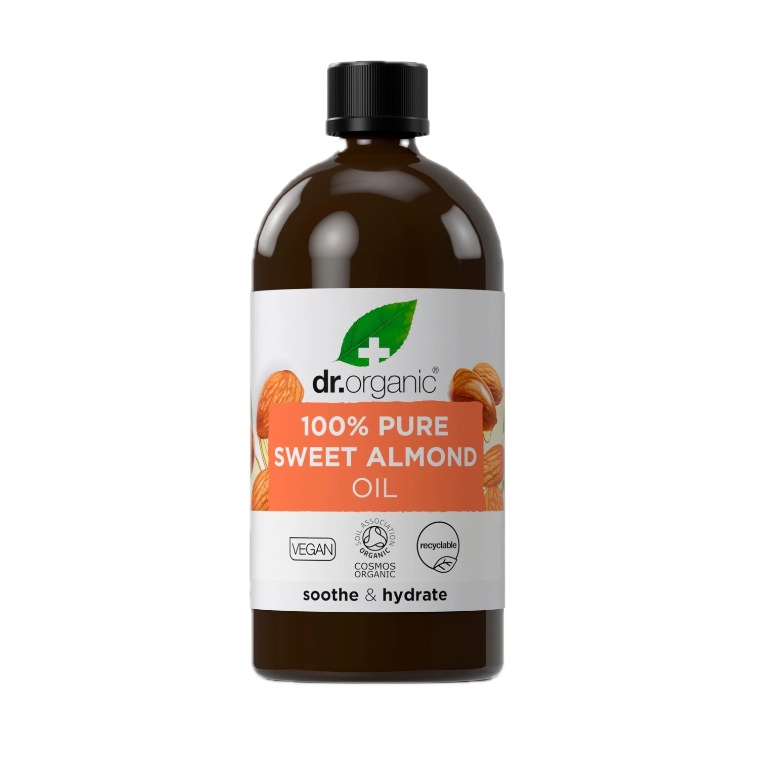 El Aceite Puro de Almendras Dulces de Dr. Organic, certificado Cosmos Organic, es un tratamiento 100% orgánico y de origen natural, ideal para hidratar la piel seca, suavizar el cabello y mejorar la elasticidad de la piel.