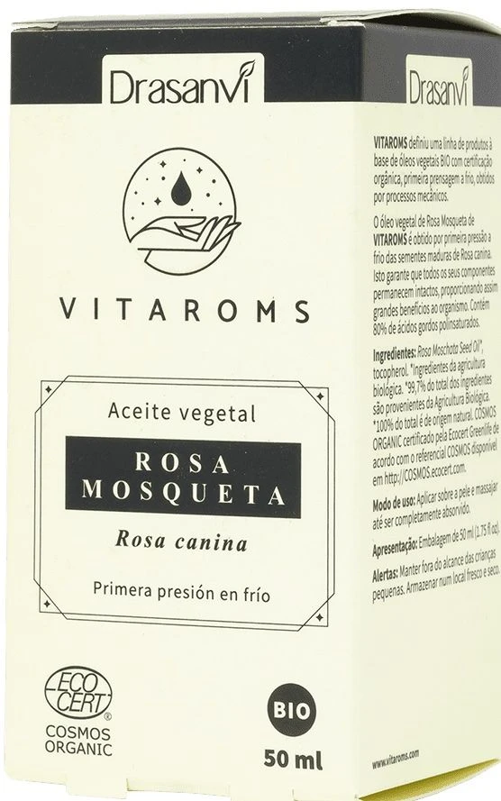 El aceite vegetal de rosa mosqueta es obtenido por primera presión en frío de las semillas maduras de Rosa canina. Esto nos asegura que todos sus componentes se mantengan intactos, proporcionando, así, grandes beneficios al organismo. Contiene un 80% de ácidos grasos polinsaturados, los cuales estimulan la regeneración natural de la piel. La aplicación diaria de este aceite vegetal proporcionará los nutrientes necesarios para mantener una piel joven y saludable.