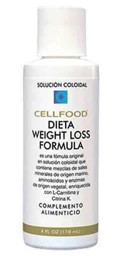 Cellfood Dieta de Cellfood es una fórmula original en solución coloidal que contiene mezclas de sales minerales de Origen marino, aminoácidos y enzimas de origen vegetal, enriquecida con L-Carnitina y Citrina.