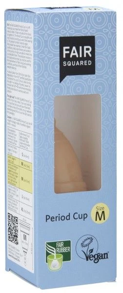 La copa menstrual Fair Squared es una copa menstrual suave, hecha de caucho natural de comercio justo. No absorbe el flujo menstrual sino que lo recoge. La Copa Menstrual se puede usar durante todo el ciclo menstrual, sin importar si el flujo menstrual es ligero o abundante.