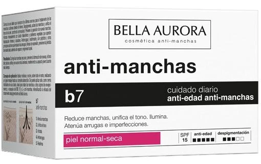 Crema Antimanchas y Antiedad para piel normal-seca de Bella Aurora es un producto de uso diario que incorpora los últimos avances para el tratamiento de las manchas cutáneas desde el interior para pieles normales con tendencia a seca.