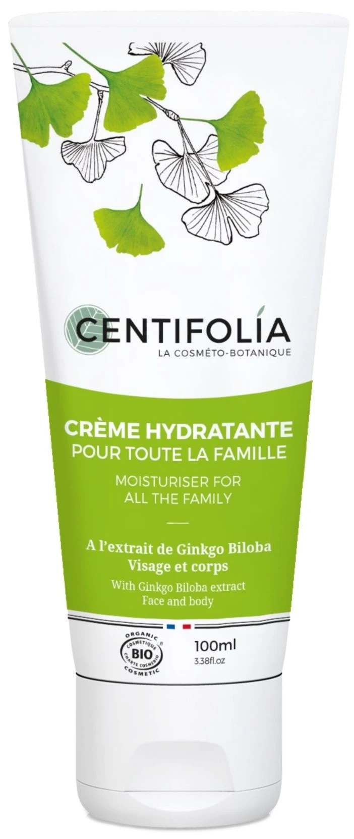 Formulada con manteca de karité orgánica de comercio justo, manteca orgánica de cacao, aceite de almendras dulces, extracto de Ginkgo Biloba orgánico, extracto de Aloe Vera orgánico y polvo de arroz.