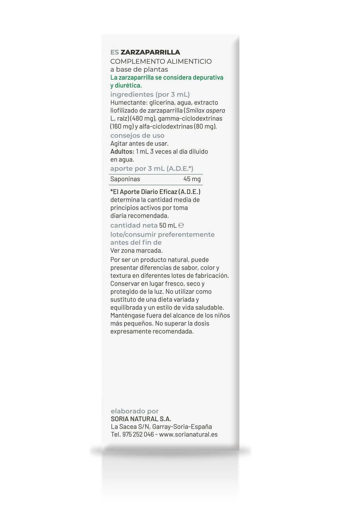 La zarzaparrilla (Smilax regelii Killip et Morton, raíz)) posee múltiples propiedades diuréticas y depurativas que favorecen la eliminación de líquidos.