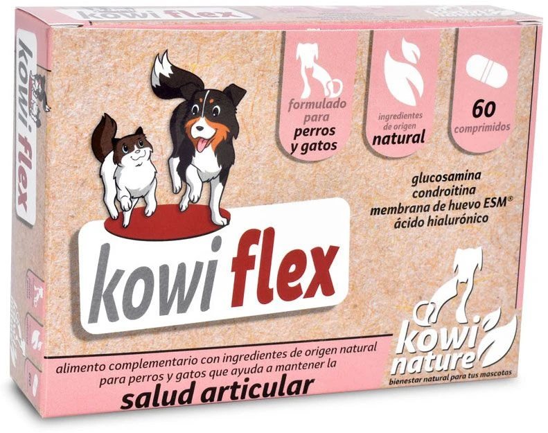 Kowi Flex de Kowi Nature es un alimento complementario indicado para ayudar al mantenimiento a largo plazo de las articulaciones, los cartílagos y los huesos.