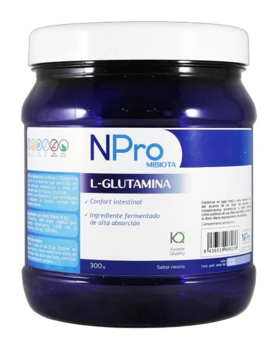 Además NPro L-Glutamina está formulado con ingredientes de alta calidad. Con una L-Glutamina de alta absorción a nivel intestinal por su origen fermentativo y 100% vegetal (Kyowa Quality).