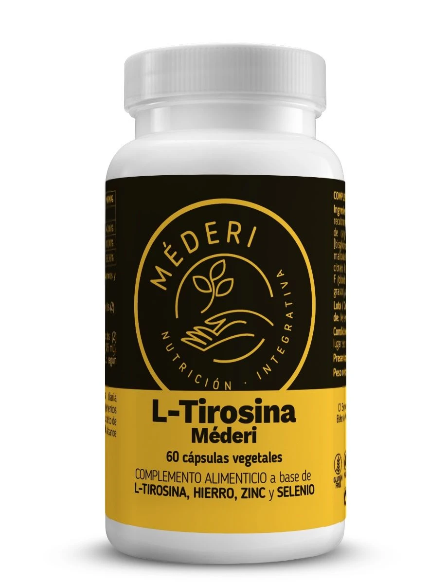 L-Tirosina, cápsula: agente de recubrimiento (hidroxipropilmetilcelulosa), agente de carga (celulosa microcristalina), Ferrochel® [bisglicinato ferroso, acidulante (ácido cítrico), maltodextrina, antiaglomerante (dióxido de silicio)], citrato de zinc, antiaglomerantes (AEROSIL® 200 F (dióxido de silicio) y sales magnésicas de ácidos grasos) y selenito sódico.