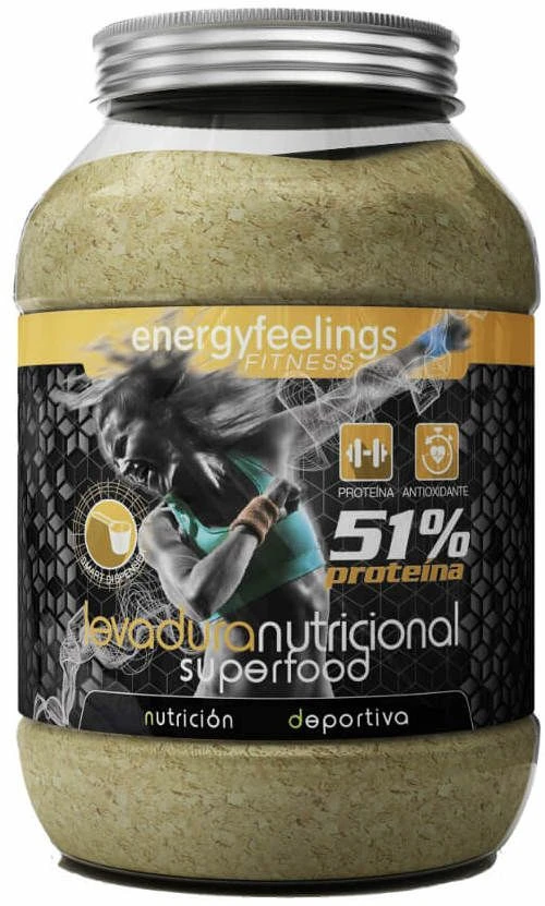 La levadura nutricional de Nutrición Deportiva Ecológica de Energy Feelings es una excepcional fuente de proteínas de gran calidad. Contiene un 51% de proteínas biodisponibles, Este superalimento es además extraordinariamente rico en todas las vitaminas del grupo B. Con la ingesta de tan solo 10g de producto se superan sobradamente los valores diarios de referencia de las vitaminas B1, B2, B3, B5, B6, B9 y la preciada vitamina B12, así como 120% del valor referencia nutricional del Zinc.