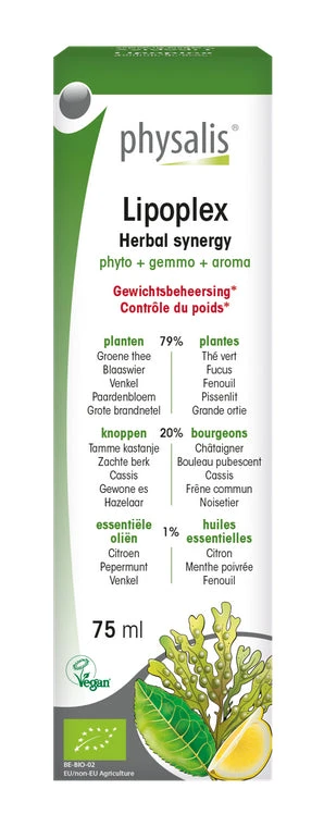 Librarse de los kilos supérfluos, mantener o afinar la silueta, esta es una misión frecuentemente difícil. Moverse más y adaptar el régimen alimenticio es un buen principio, pero algunas plantas pueden sostener y facilitar estos esfuerzos. Physalis Lipoplex bio contiene té verde, fucus, grosellero negro y fresno que participan en el control de peso, acompañan las dietas de adelgazamiento y ayudan a mantener el nivel de energía. Además, el té verde favorece la termogénesis (producción de calor) y el consumo de energía.