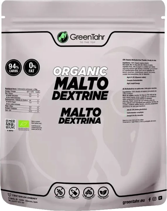 La Maltodextrina de Tapioca con certificación ecológica es un tipo de carbohidrato de tipo Complejo y de Alto Índice Glucémico. Se trata de una fuente de Energía para Deportes de Resistencia y para los de Alta Intensidad. Rápida Absorción para favorecer el Rendimiento y mejorar la Recuperación. La Maltodextrina de Tapioca es RAW. Preparada para mezclarse con agua o la bebida favorita. Permite una rápida y fácil mezcla del producto en agua u otra bebida.