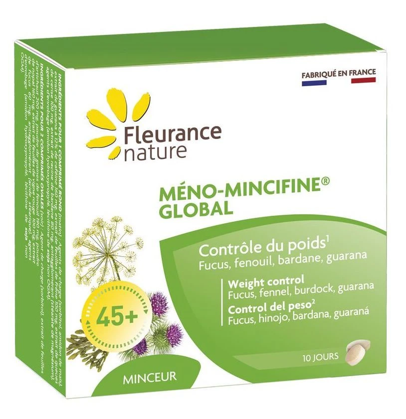 Basado en los principios de la cronobiología, Meno-Mincifine Global de Fleurance Nature aporta al organismo los elementos que necesita específicamente en las mujeres a partir de los 45 años para una acción día y noche óptima. Tienen propiedades como control de peso, metabolismo de la grasa, eliminación, digestión, circulación.