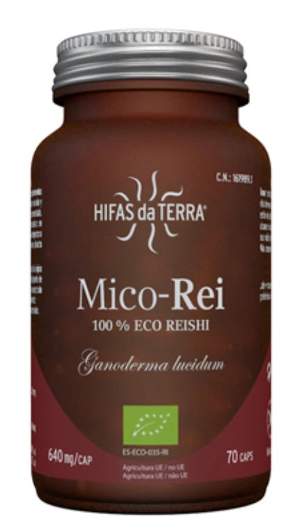 Mico Rei extracto de Reishi es un complemento alimenticio de alta concentración en cápsulas. Solo contiene extracto puro y ecológico de Reishi (Ganoderma lucidum) con un alto contenido de nutrientes como beta-glucanos, triterpenos, fenoles, ergosteroles, etc.