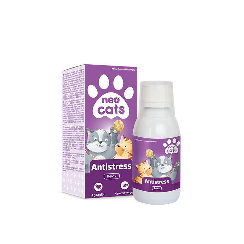 Neo Cats Antistress es un complemento nutricional líquido especialmente diseñado para ayudar a tu gato a manejar situaciones estresantes, como viajes, tormentas o cambios en el entorno.
