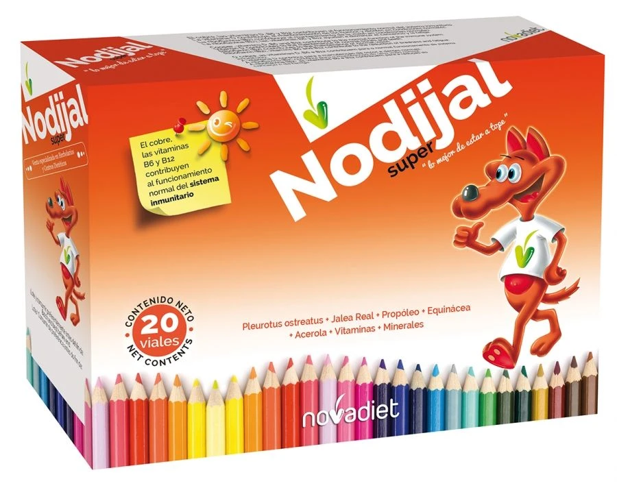 Nodijal Super se ha formulado para reforzar el sistema inmunitario de los niños (les ayudará a estar más protegidos de catarros e infecciones respiratorias durante los meses más fríos, los cambios de estación y el curso escolar), para suplementar la dieta diaria y ayudar en la etapa de crecimiento; sobre todo, en aquellos niños con dietas desequilibradas y/o deficitarias y para disminuir el cansancio del día a día del curso escolar.