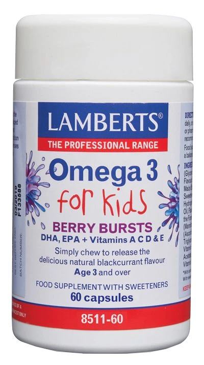 Este producto de omega 3 con sabor a frutos del bosque ha sido formulado especialmente para los mayores de 3 años. Al masticar la cápsula blanda se libera un delicioso sabor a grosella natural y aporta ácidos grasos omega 3 junto con las imprescindibles vitaminas A, C, D y E.