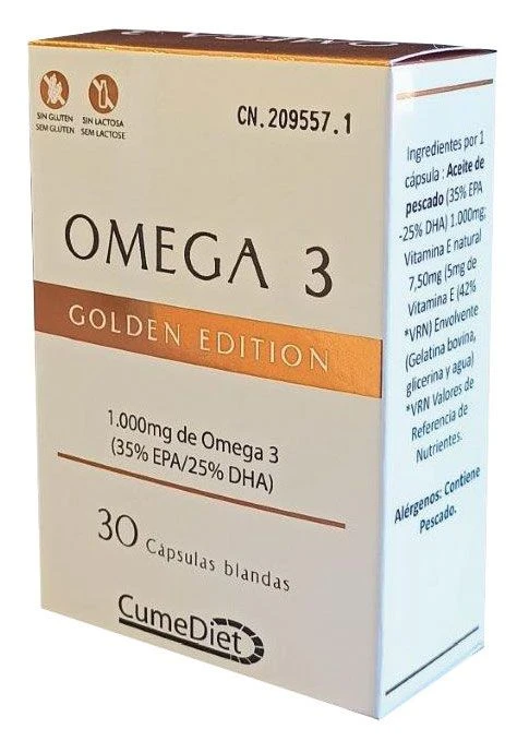 Aceite de pescado (35% EPA y 25% DHA)(1.000 mg), vitamina E natural (7,50 mg)(5 mg de vitamina E). Envolvente (gelatina bovina, glicerina y agua).