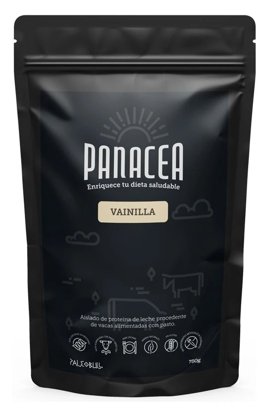 Panacea es un suplemento elaborado a partir de aislado de proteína de suero de leche de vacas criadas en libertad, que han sido alimentadas con pasto (grass fed). Con aromas naturales, sin aditivos artificiales y edulcorada con estevia.