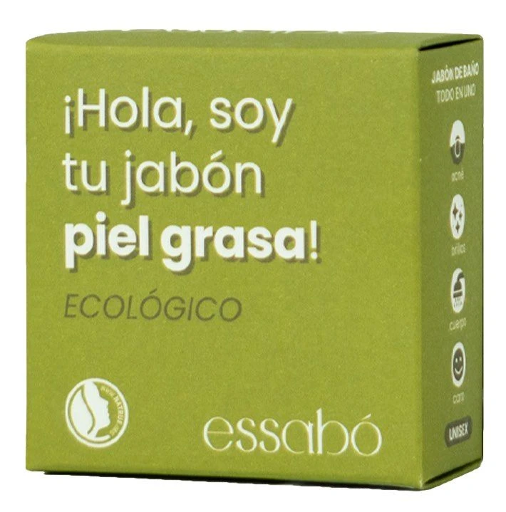 Es un jabón especialmente diseñado para personas con piel grasa y/o con acné. Está enriquecido con arcilla verde certificada. La arcilla verde es un regulador natural de la grasa y reduce el sobreengrasado de la piel. Su base está elaborada con aceite de coco de agricultura sostenible y de aceite de oliva procedente de cultivos bio españoles.