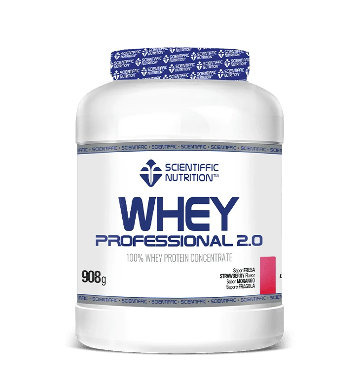 Whey Professional 2.0 Whey Protein: Sabor Fresa de Scientiffic Nutrition es una proteína de suero de leche especialmente indicada para la mejora de tu rendimiento muscular y de muy fácil asimilación gracias a sus enzimas añadidos y lactasa. Se disuelve instantáneamente en agua fría y tibia.